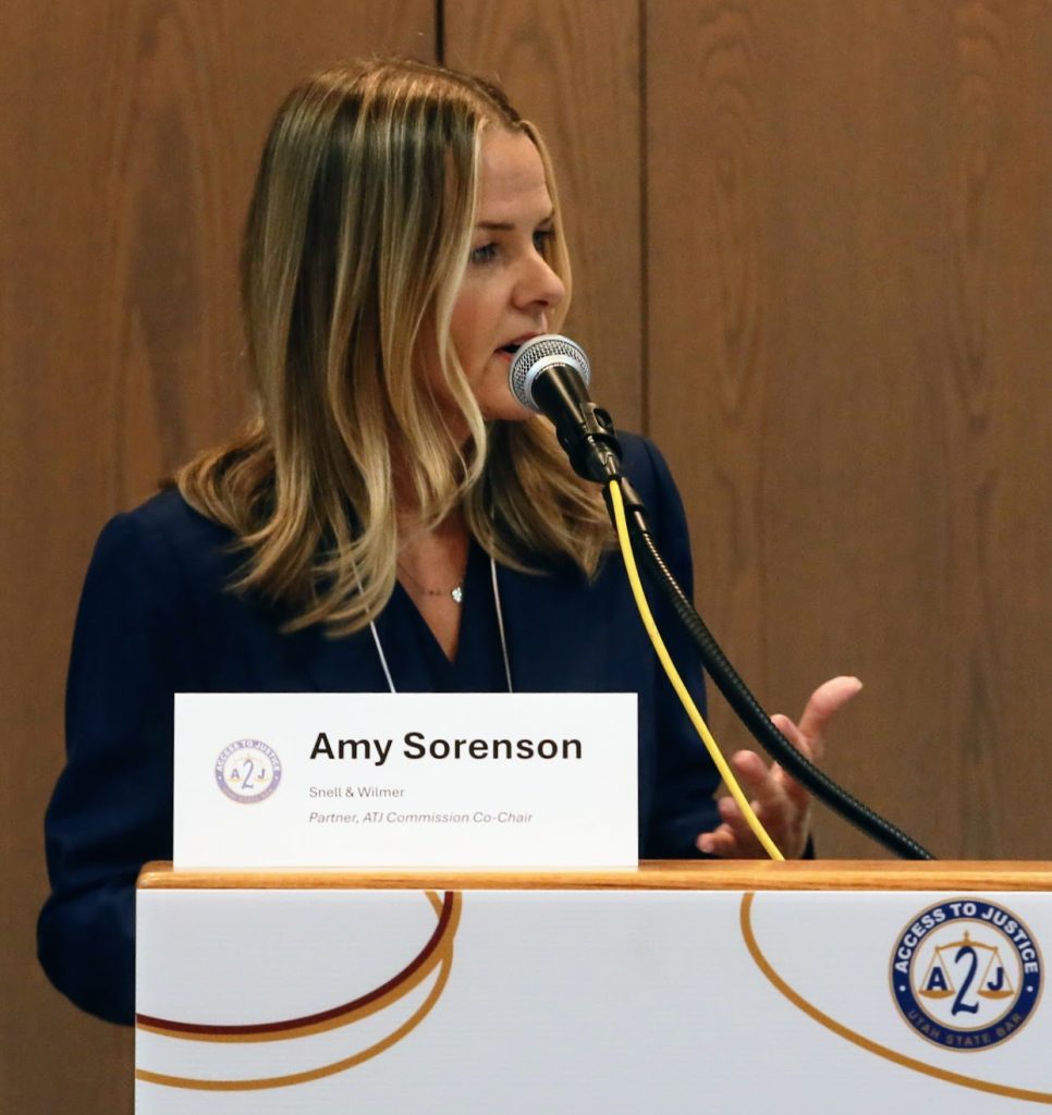 The Summit opened with a keynote by Amy Sorenson, partner at Snell & Wilmer and Co-Chair of the Access to Justice Commission. Sorenson framed her remarks around the Summit’s theme: “Moving Forward Together: Connection, Strength, Impact.” Drawing on both personal experiences and lessons from disaster response, she reminded attendees that even in times of loss and uncertainty, purpose and hope remain powerful guiding forces.